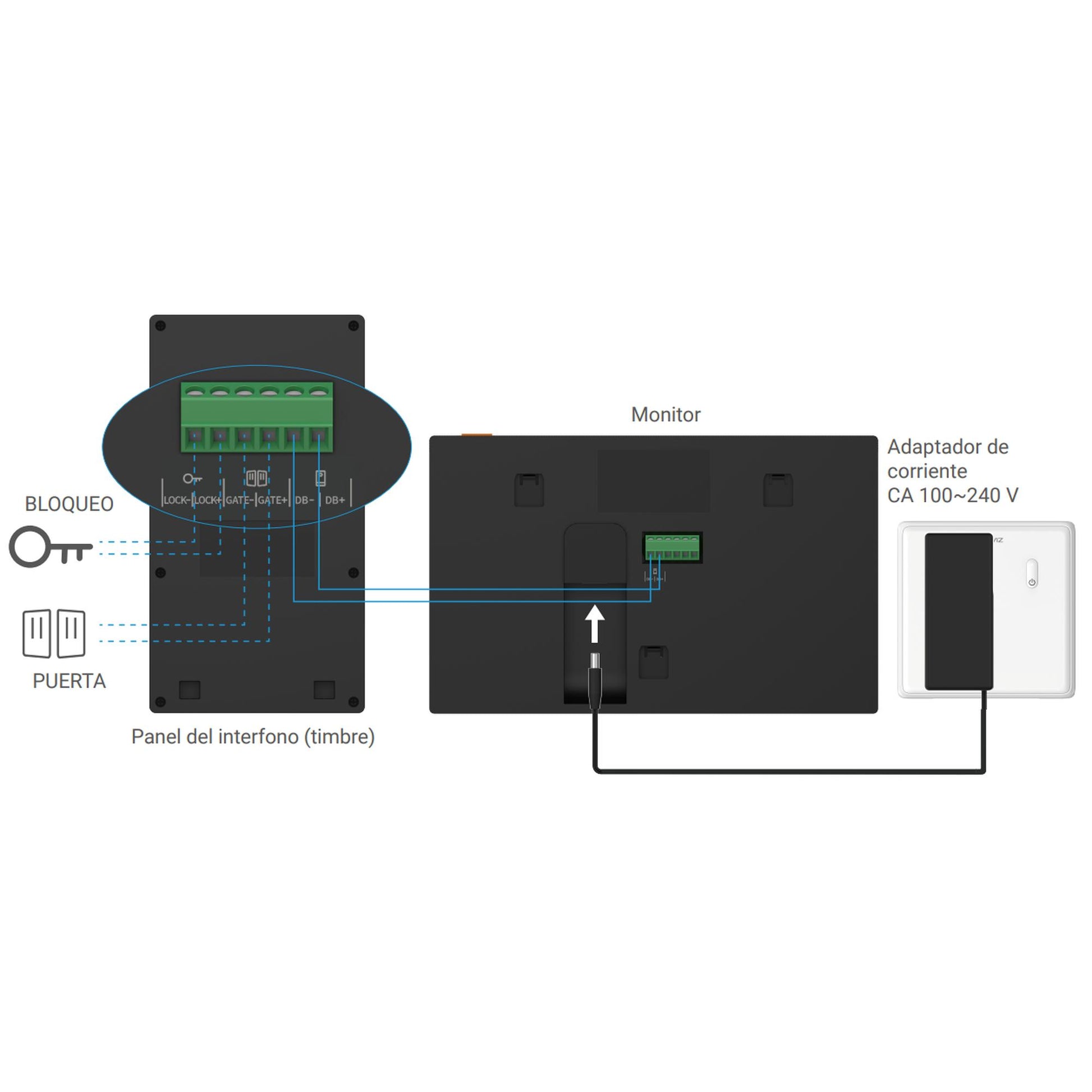 Alimentación: Se alimenta conectado a 2 hilos del monitor